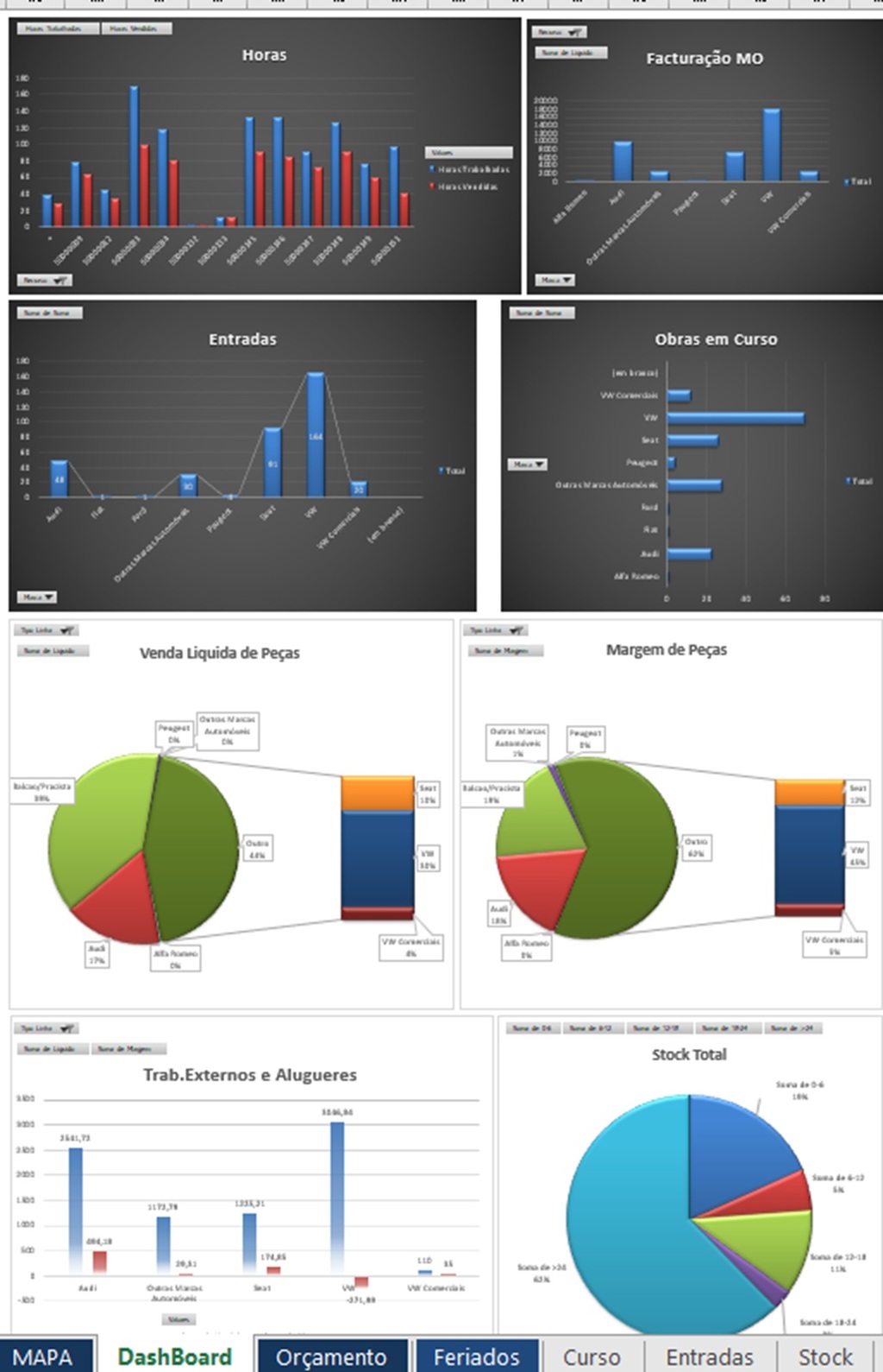 Como consequência, no âmbito do reporting em Autoline, integrado com ferramentas Office (Excel), existem desenvolvimentos de relatórios/DashBoards customizáveis que respondem a quatro finalidades imprescindíveis ao negócio:
