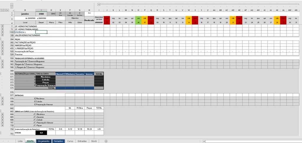 APV Diário – Actividade diária de todo o APV (Tópico -> Local -> Departamento -> Marca/Filtro) (Tópicos = MO, Peças, TExternos, Entradas, Obras em Curso, Stocks)